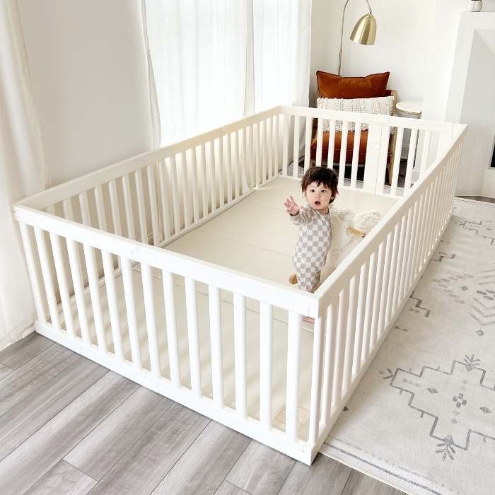 The Prima Playpen is designed to fit seamlessly around your Wunderkids Playmat, transforming it into a secure, enclosed "baby room". Its modular design allows you to adjust the size (full, half, or quarter setups) or even connect two units for a massive play space. It creates a sturdy, contained area that evolves with your child—from tummy time to active toddler play.